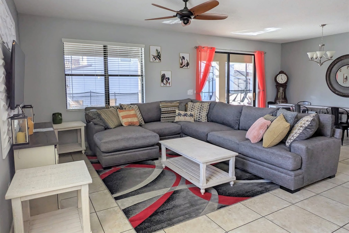 9 Bedrooms • 5 Bathrooms 5 Baths • Sleeps 14-24Villa Palmentuinπ΄ welcomes you to Orlando! Spacious 9 bedroom 5 bath villa with huge private pool and screened lanai sleeps 24. Try on your wizard hat in the coziest Harry Potter chamber, discover the magic in your own enchanting Princess room or join forces in our sizable Star Wars dorm. Game room with multiple games for kids of all ages to enjoy! FREE access to nearby resort style clubhouse with lazy river, swimming pools, restaurant and more. Close to attractions including Disney World, Universal Studios and golf courses.